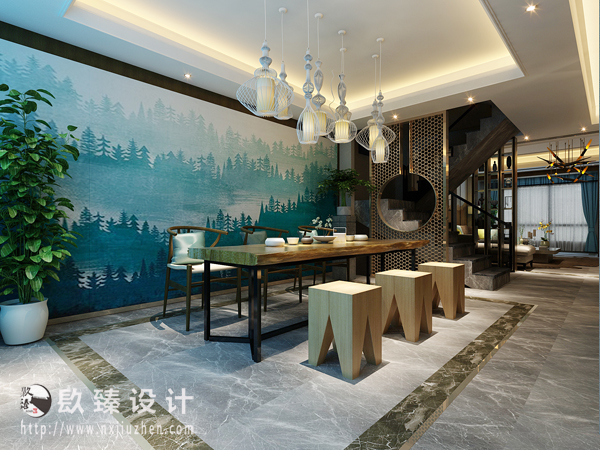 在新中式風格的家裝中,設計師褪去傳統中式風格的厚重,在局部中,也并非局限于傳統中式風格的軸對稱和平八穩,整體設計更加簡潔,講究空間層次感,以陰陽平衡概念調和室內生態,整體感覺也更為輕松。