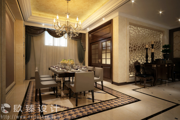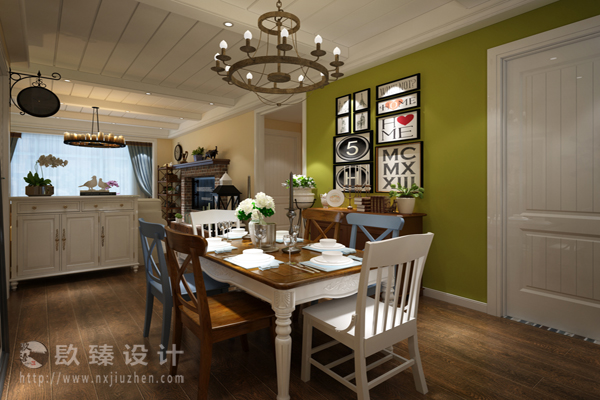 餐廳墻面的氣氛既要美觀,又要實用,不可信手拈來,盲目堆砌。如果愿意在餐廳的墻壁上掛一些如字畫、瓷盤、壁掛等裝飾品,則可根據餐廳的具體情況靈活安排,用以點綴環境,但要注意不可喧賓奪主,雜亂無章。