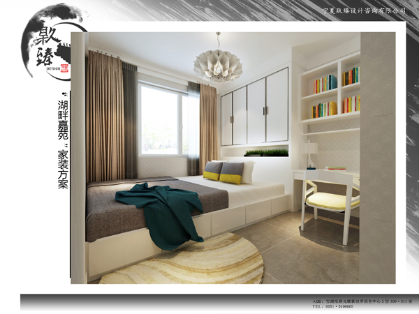臥室一處構成套間或臥室的一端設計書房;可于兩者之間設置壁柜避免與臥室的相互干擾和影響。