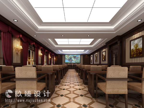 會議室的色調(diào)更是獨(dú)特而大方,布藝椅子配上成木紅漆桌子,成一字型的擺列方式,讓整座會議室彰顯安靜而沉穩(wěn)的感覺,配上紅色而質(zhì)感的窗簾,如果在開會期間,可以阻擋外面過于強(qiáng)烈的陽光,也可以發(fā)揮投影儀的功能,墻壁再掛上法式畫,讓文藝的氣息顯得淋漓盡致。