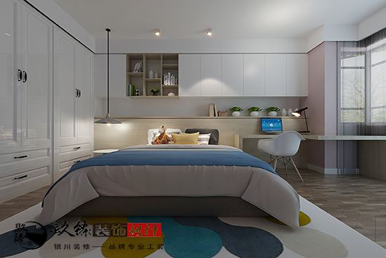 不知道大家注意到了嗎?銀川裝修網|銀川裝修公司|镹臻裝飾|家裝裝修設計|楊熙在本案例設計中,大量的設計了柜子,隔斷等,這一點就是為了滿足房屋主人的要求,因為一座房屋要住很久,慢慢的家里置辦的物品會越來越多,這些收納的柜子什么的就起到了大作用,都可以把一些物品放到我們輕易看不到的地方,這樣不就大大的增加了房屋的整潔了嘛。為了不顯單調,銀川裝修公司|銀川裝飾公司|銀川家裝設計|镹臻裝飾房屋內的每一面墻幾乎都使用了不同的顏色,電視背景墻也使用的是不易過時的高級灰,金屬條邊框更顯高貴氣質,歐式護墻板在旁邊的襯托也是增加房屋整體所散發出來的質感。主臥室的床頭背景墻也是臥室的一大亮點,一束射燈的微光輕輕地剛好聚在有蝴蝶造型的墻上,竟有那么一絲絲的仙氣。銀川裝修網|銀川裝修公司|镹臻裝飾女孩房的設計就比較清新了,考慮到是女孩房,也是使用了大部分的柜體,從而起到好的收納效果。實用性非常的強。木地板,木質床頭,雖沒有很華麗,但是這才是女孩房該有的味道,那就是清新,淳樸,自然。