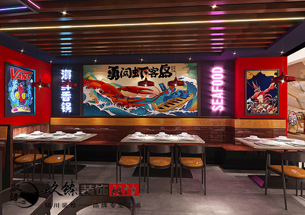 銀川裝修公司請您欣賞一家專業(yè)以“魚和蝦”為特色的工業(yè)風(fēng)連鎖主題餐廳