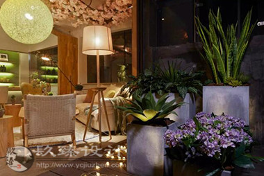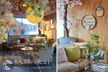 藤球吊燈集合花藝,一幅唯美的月上枝頭畫面映入眼簾。夕陽斜入,空間充滿慵懶清新的氣息,進入夜晚,人們在溫馨的燈光下聚會,空間充滿歡樂的氣氛。