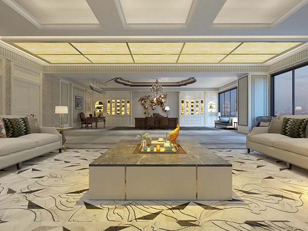在銀川镹臻裝飾中,開敞式布局特點是大空間,無分隔,工作位置是根據工作程序,按幾何學規律整齊而排列的。在這里,“開敞”是針對“分格”而言的。這種布局形式便于管理,也有利于加強工作之間的聯系,并且節省交通面積和工作聯系的時間,提高工作效率。