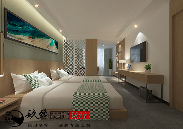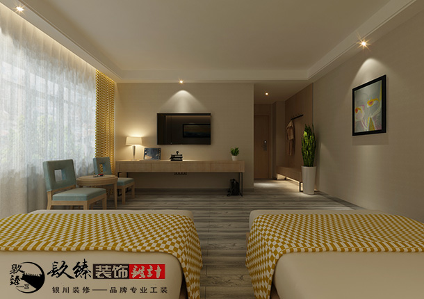今天銀川裝修镹臻裝飾小編為大家?guī)?lái)的酒店案例屬于現(xiàn)代簡(jiǎn)約風(fēng),其裝修風(fēng)格更接近原始自然,墻面多以清新的綠色和黃色做搭配,再植入一些裝飾畫(huà)進(jìn)行配飾上面的搭配,簡(jiǎn)單的基礎(chǔ)配色以及木質(zhì)材料最終打造將該酒店以極簡(jiǎn)主義的形式展現(xiàn)出來(lái),檸檬黃在簡(jiǎn)約風(fēng)格中經(jīng)常被廣泛使用,這種顏色作為點(diǎn)綴的效果是非常好的,其活潑靚麗感為整個(gè)房間增添了潛移默化的跳動(dòng)感。