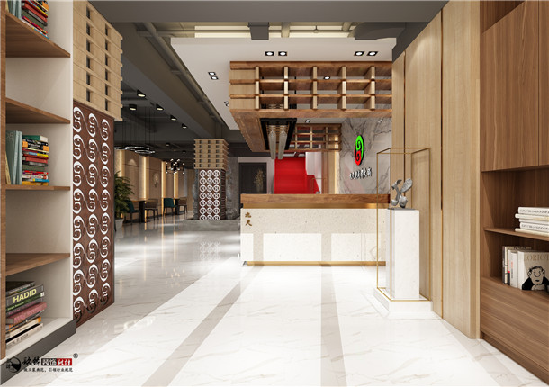 從入口到大廳,再由大廳到包房,區域劃分合理完美:硬質實木板材、蘭色硅藻泥涂料、鏤空紅磚墻體以及不加裝飾略帶有重金屬味道的頂部空間,由專業廠家訂制的仿真樹,通過設計師的創作設計使得整個空間顯得那么雅致清新有格調,為每一位來此品嘗美味的食客不僅有美味對味蕾的沖擊,更能有空間環境帶給大家的愜意和回味。
