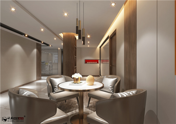 對于律師事務所裝修的印象,都會想到是一個嚴謹、認真、細心的高大的地方,如:采用灰色、黑色、白色等顏色呈現出一個莊嚴神圣的法律形象。本案在裝修過程中加入多元化元素,讓事務所更加柔和。律師事務所的秩序感指的反復、節奏、完整和簡潔。正是運用這一基本理論來創造一種安靜、平和與整潔環境。秩序在辦公室裝修中起著關鍵性的作用。