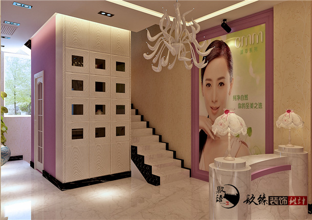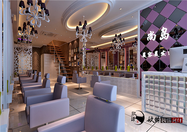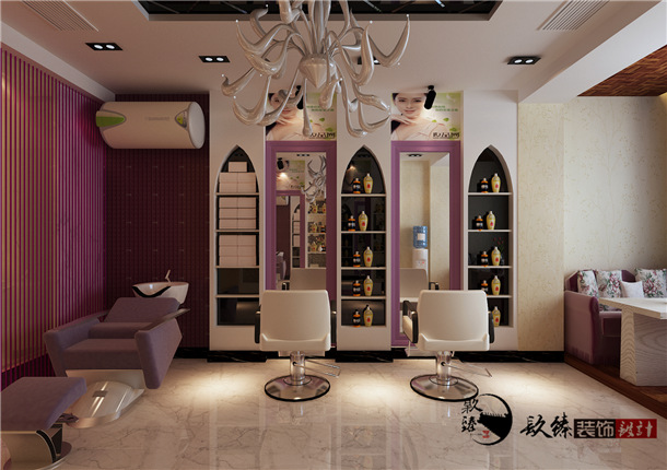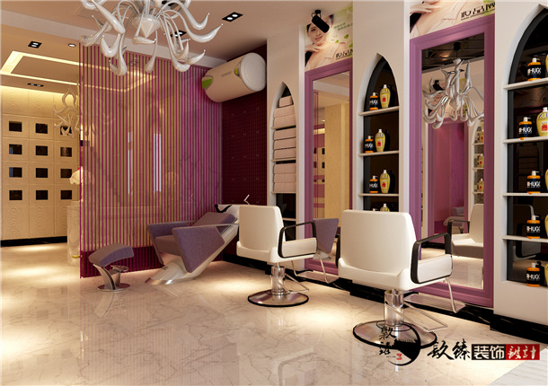 設(shè)計師在美發(fā)店中心部位選擇輕快愉悅明了的色彩為裝修主色調(diào),墻壁、地面、天花等運用大面積的造型色彩,細(xì)節(jié)部分經(jīng)過特殊的處理。店面入口我們多采用落地玻璃,增加店面的擴(kuò)張感及通透感。店里所有的工具都擺放得非常整齊,并有專門的整理箱和整理架。
