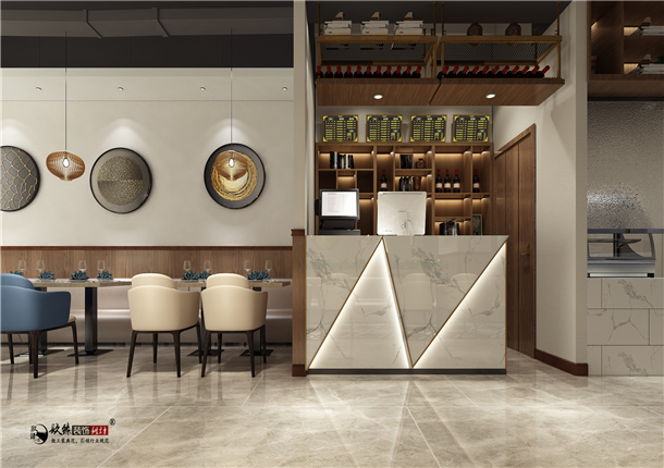 餐廳色彩以素雅的黑灰為空間主色調(diào),銀川餐廳裝修|銀川餐廳裝修設(shè)計(jì)|镹臻裝飾配以金屬色貫穿及延伸整個(gè)空間,整體感受是時(shí)尚精致有細(xì)節(jié)。在用餐區(qū)的設(shè)置上以舒適的卡座為主提高用餐舒適度及私密性,明檔及廚房前置做開(kāi)放式體驗(yàn),讓顧客感受到食材的完整呈現(xiàn)。在餐廳內(nèi),隨處可見(jiàn)與輕奢系列的相關(guān)設(shè)計(jì)元素,這與餐廳的主題相得益彰。而餐廳內(nèi)的裝潢更是切中主題。本案最終將設(shè)計(jì)風(fēng)格定義為現(xiàn)代輕奢風(fēng),就是當(dāng)下非常流行的一種風(fēng)格,現(xiàn)代與輕度的奢侈相結(jié)合,屬于中高端的定位,有著自身獨(dú)特的品位。面對(duì)這日益提升的審美,將輕奢概念帶入室內(nèi)裝飾中不僅代表著精品生活方式,更代表著正在享受高質(zhì)量的生活細(xì)節(jié)。設(shè)計(jì)師運(yùn)用極致簡(jiǎn)約風(fēng)格為基礎(chǔ),再通過(guò)一些精致軟裝元素來(lái)凸顯質(zhì)感。
