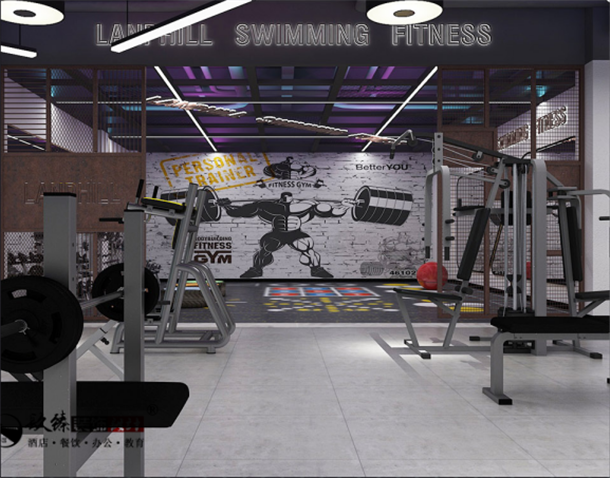 運動區域以深色系為主,給人一種壓迫感,從而通過不斷的運動來釋放壓力。 休閑區域就要給人一種明亮的感覺,多使用射燈和白熾燈來提升空間亮度,動感單車等區域采用彩燈來營造氣氛。練操房的整體空間比較大,給健身的人感覺很遼闊,在練操房安裝了一張大面積的鏡子,用來加強健身時氣氛和效果。