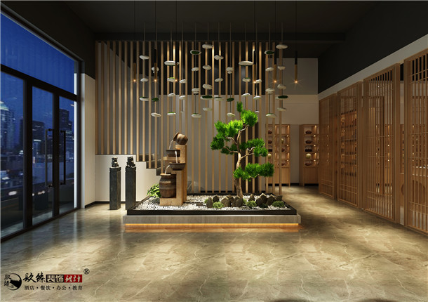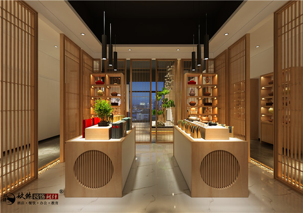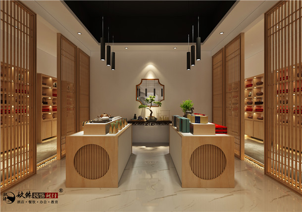 在本案茶室裝修設計中,裝修的主題需要持續不斷有所變更。茶室中的擺設,無疑增加了茶室整體的觀感。