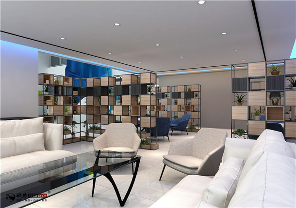 本案辦公樓裝修設(shè)計(jì)中設(shè)計(jì)師利用色彩、圖案的巧妙搭配,讓再小的空間設(shè)計(jì)給人更多的視覺(jué)空間,比如利用圖案線條的延伸,拉長(zhǎng)或者加高空間。同時(shí),設(shè)計(jì)裝飾辦公室時(shí),設(shè)計(jì)師利用一些鏡面反光材料,創(chuàng)造一些視覺(jué)空間。